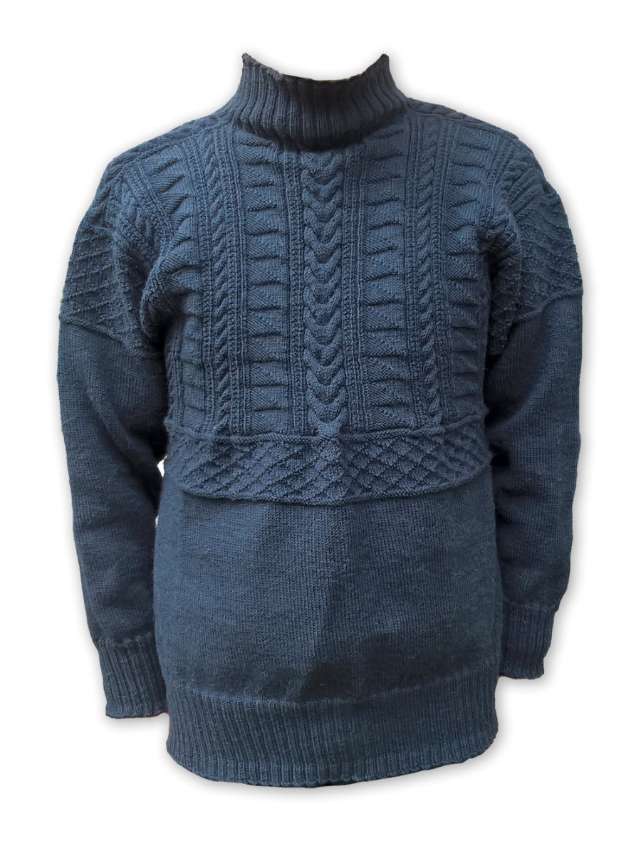 Authentic hand-knitted Ganseys in 5-ply worsted wool, and Gansey Knitting Kits