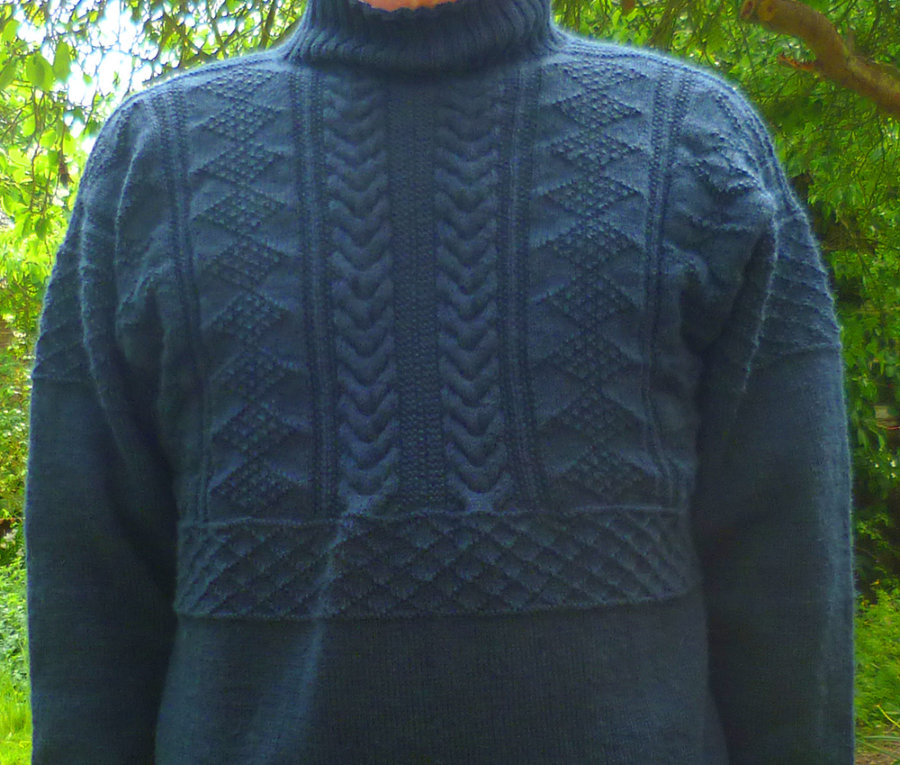 Authentic hand-knitted Ganseys in 5-ply worsted wool, and Gansey Knitting Kits