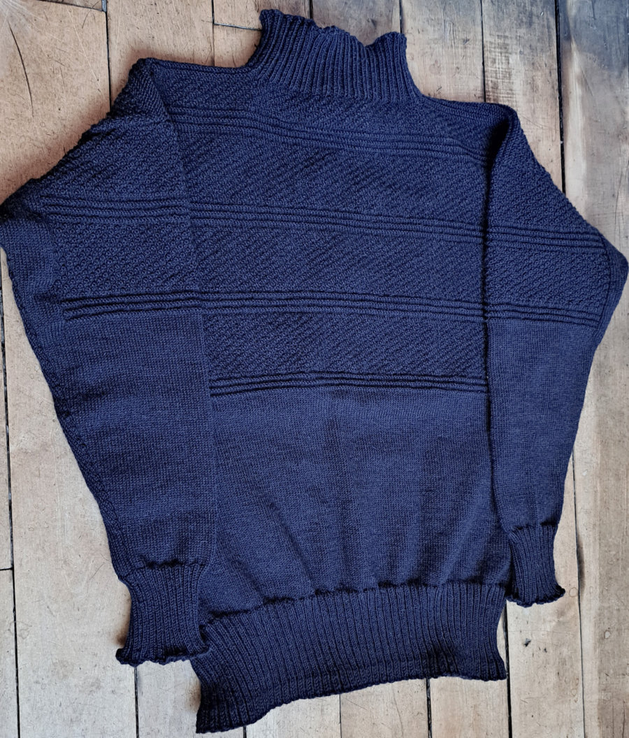Authentic hand-knitted Ganseys in 5-ply worsted wool, and Gansey Knitting Kits